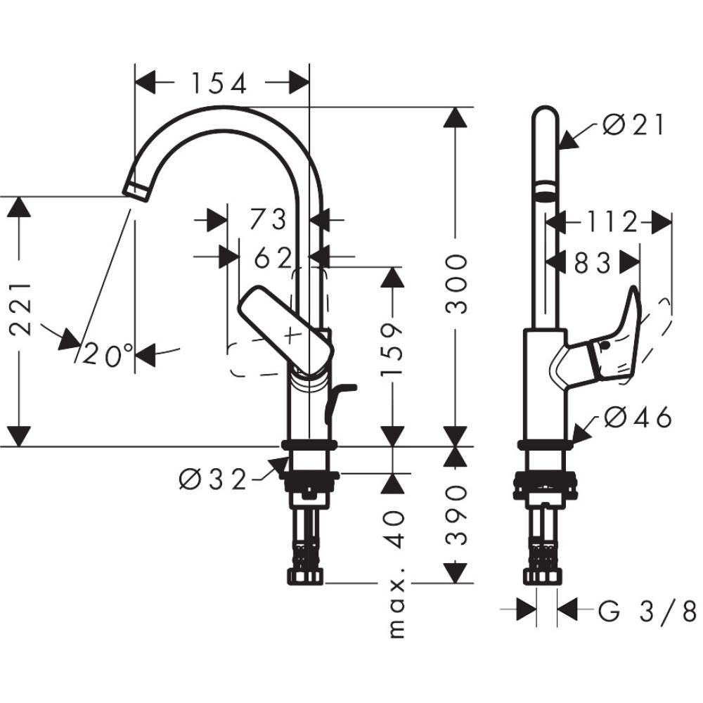 Высота смесителя:30