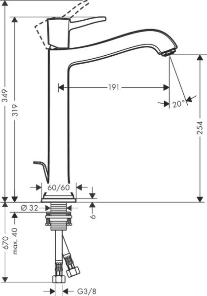 Длина излива, см:19.1