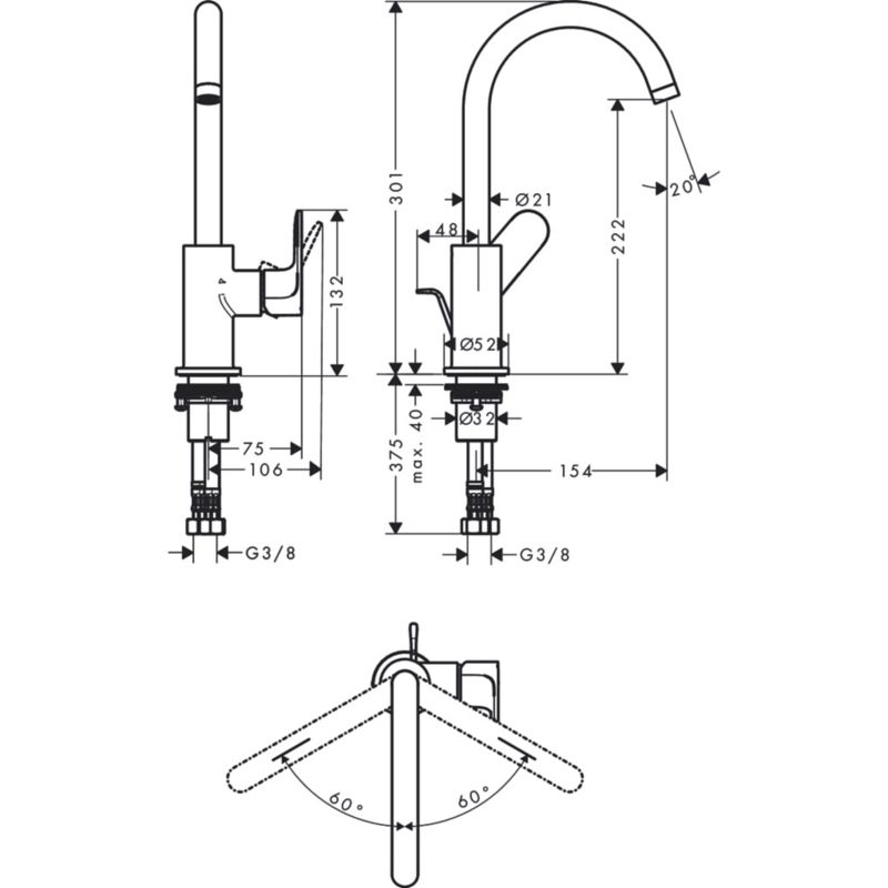 Смеситель для раковины Hansgrohe Rebris S 72536000 хром