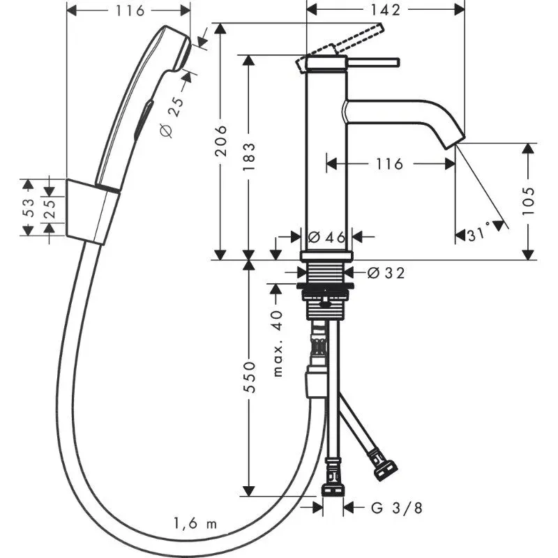 Смеситель для раковины Hansgrohe Tecturis S 73070700 черный