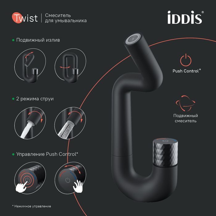 Смеситель для раковины IDDIS Twist Push Control TWIBLBTi01 чёрный матовый купить