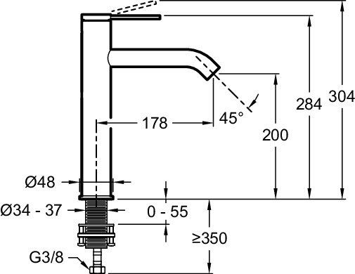• Модный изогнутый излив, обеспечивающий хороший поток воды