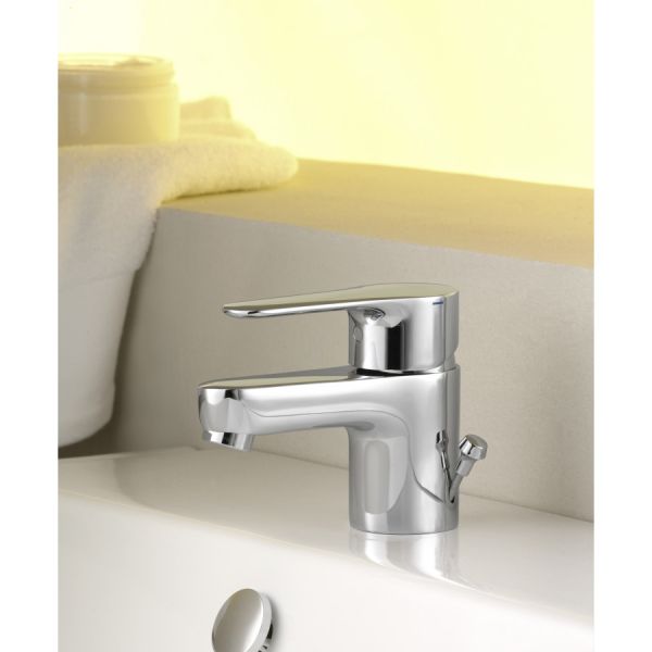 Смеситель для раковины Jacob Delafon July E16027-4-CP.Компактный однорычажный смеситель с фиксированным изливом, монтируемый в одно отверстие, отлично подходит для различных интерьеров ванной комнаты в современном стиле.Цвет: хром.Материал: латунь.