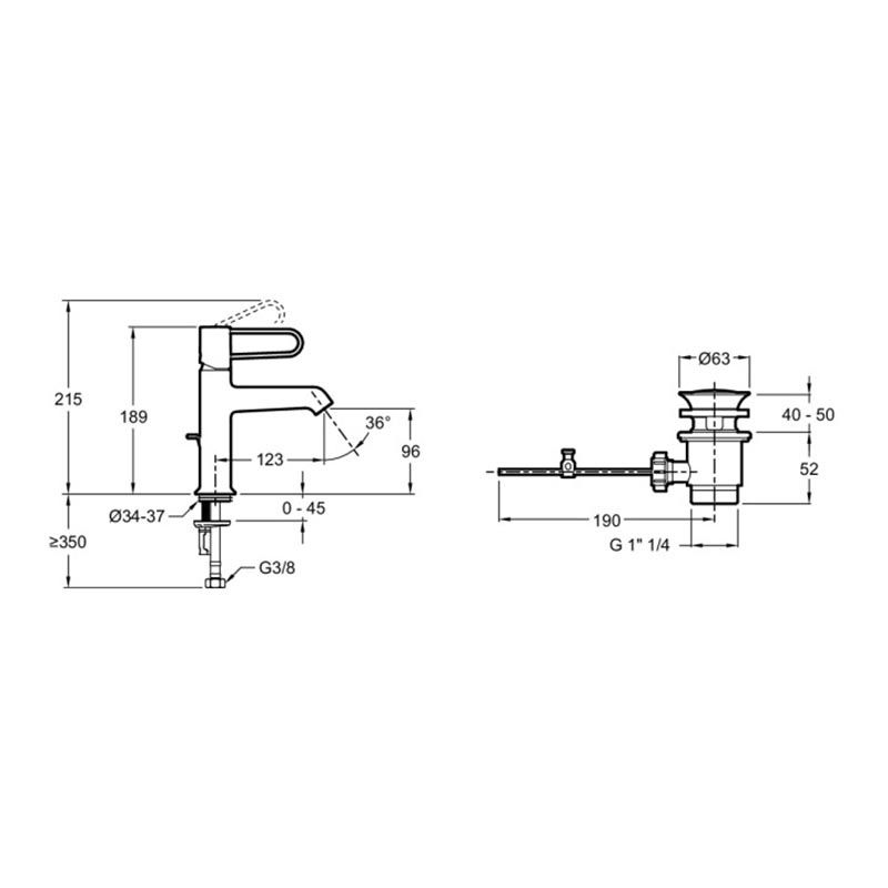 С донным клапаномДонный клапан в той же отделке, что и входящий в комплект смеситель