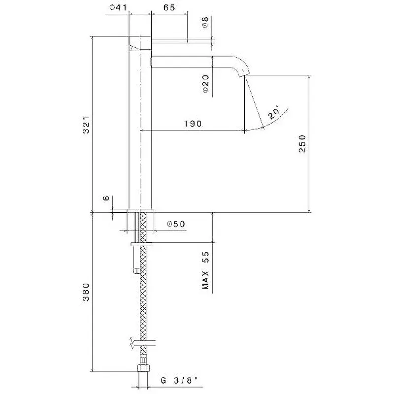 Высокий однорычажный смеситель выполнен из нержавеющей стали AISI 316: этот металл обладает особой устойчивостью к механическим воздействиям, гипоаллергенен, не подвержен коррозии. Дизайн изделия отличается лаконичностью и в то же время отвечает последним тенденциям дизайна. Смеситель подходит для установки на столешницу для использования с накладными раковинами.