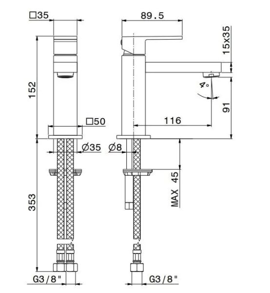 66412KM.21.018 Смеситель для раковины FUTURA однорычажный, без донного клапана 3/8, хром