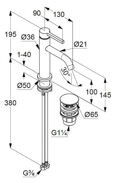 - однорычажный смеситель на умывальник 100 DN 15