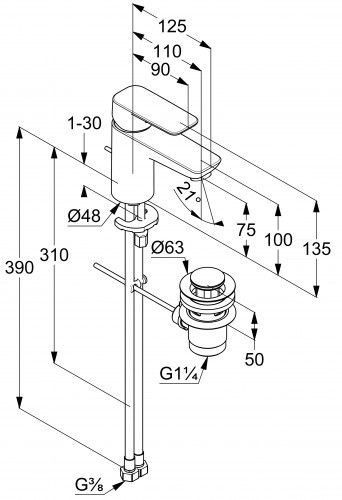Смеситель для раковины Kludi Pure&Style чёрный матовый 400283975