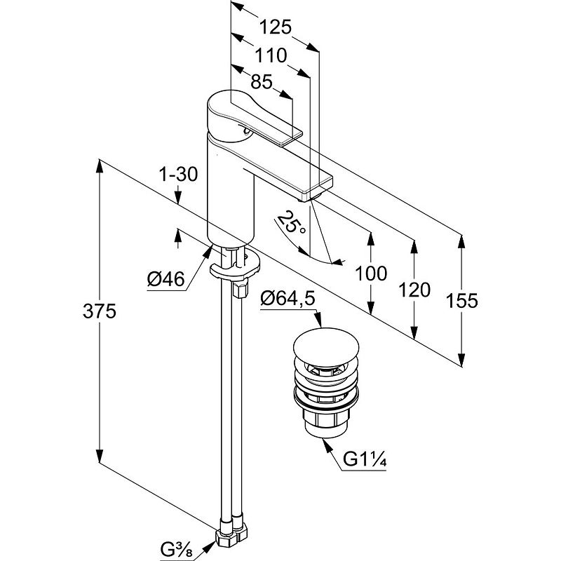 Смеситель для раковины Kludi Zenta SL 482983965 Черный матовый