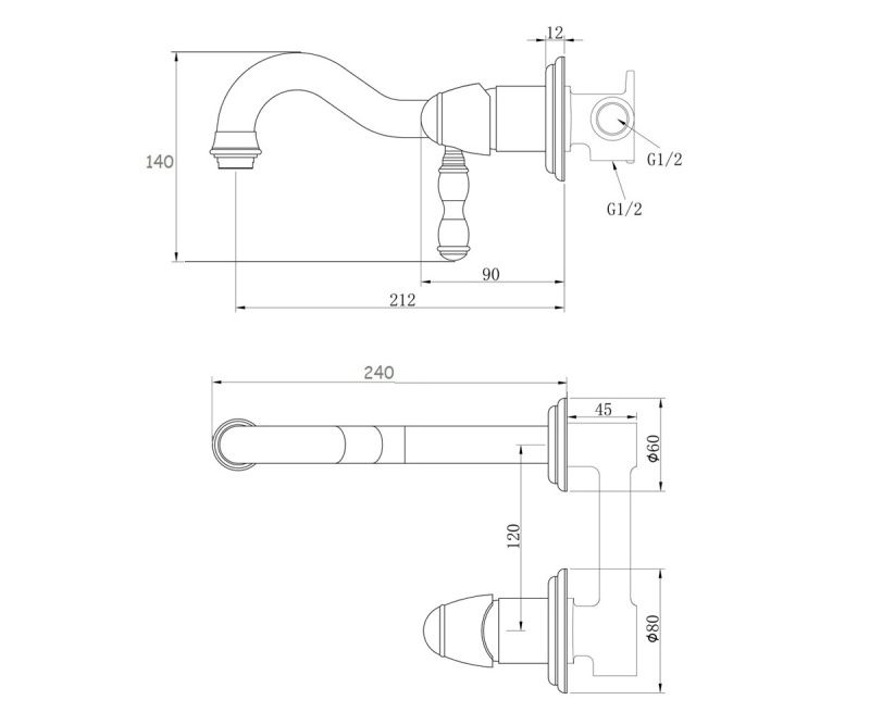 Смеситель для раковины настенный Bronze de Luxe TIFFANY 1920CR, хром