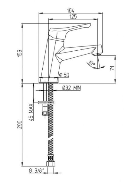 - Аэратор Neoperl под наклоном (струя отводится дальше от края раковины) наполняет воду кислородом, снижает напор воды, вследствие чего становится возможной существенная экономия воды. Сеточка легко очищается пальцем.