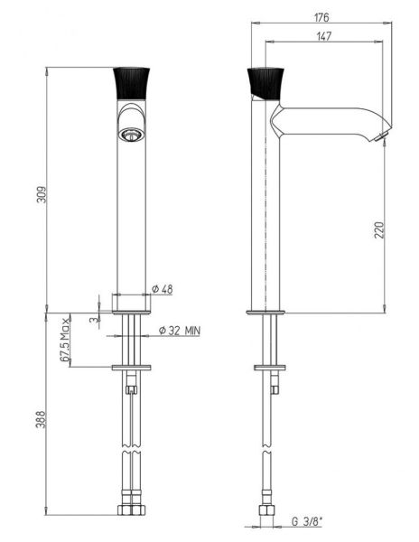 - Увеличенная высота корпуса смесителя позволяет использовать его с накладными раковинами и раковинами-чашами.