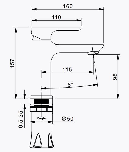 Смеситель для раковины Raglo R03.10.09, графит. Смеситель для раковины RAGLО имеет повышенную прочность корпуса. Соответствует требованиям международного стандарта. Одна рукоять для регулировки воды. Аэратор гарантирует одинаковый поток воды, сеточка рассеивает напор, вода смягчается. Смеситель устанавливается на гайке, нижняя часть смесителя вставляется в отверстие для монтажа и затягивается гайкой для фиксации. Данный смеситель для умывальника имеет надежный стационарный излив, не меняющий своего положении. Смеситель прекрасно смешивает потоки воды, а помимо этого обладает невысоки показателем шумов. Быстрый монтаж.Гарантия производителя 7 лет.