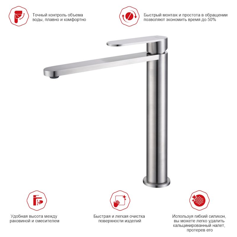 Высокий смеситель для раковин-чаш Raglo R10.15.05 — это идеальное решение для тех, кто ценит комфорт и стиль в каждой детали своего дома.