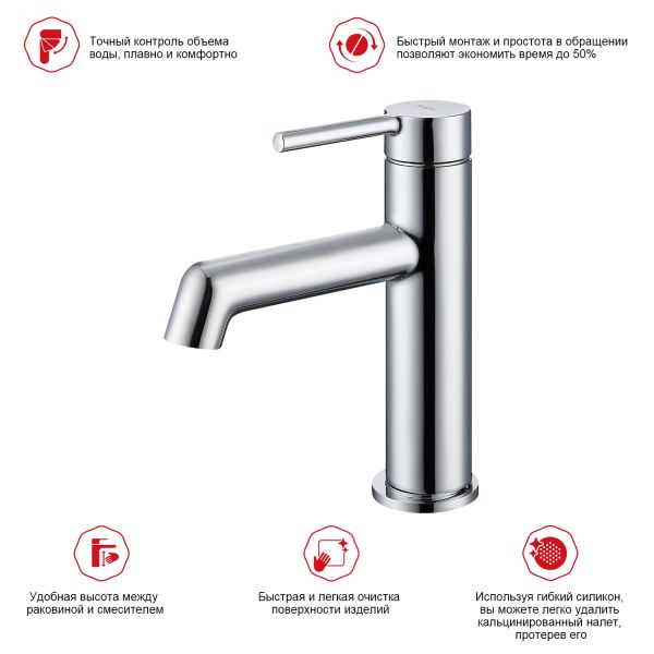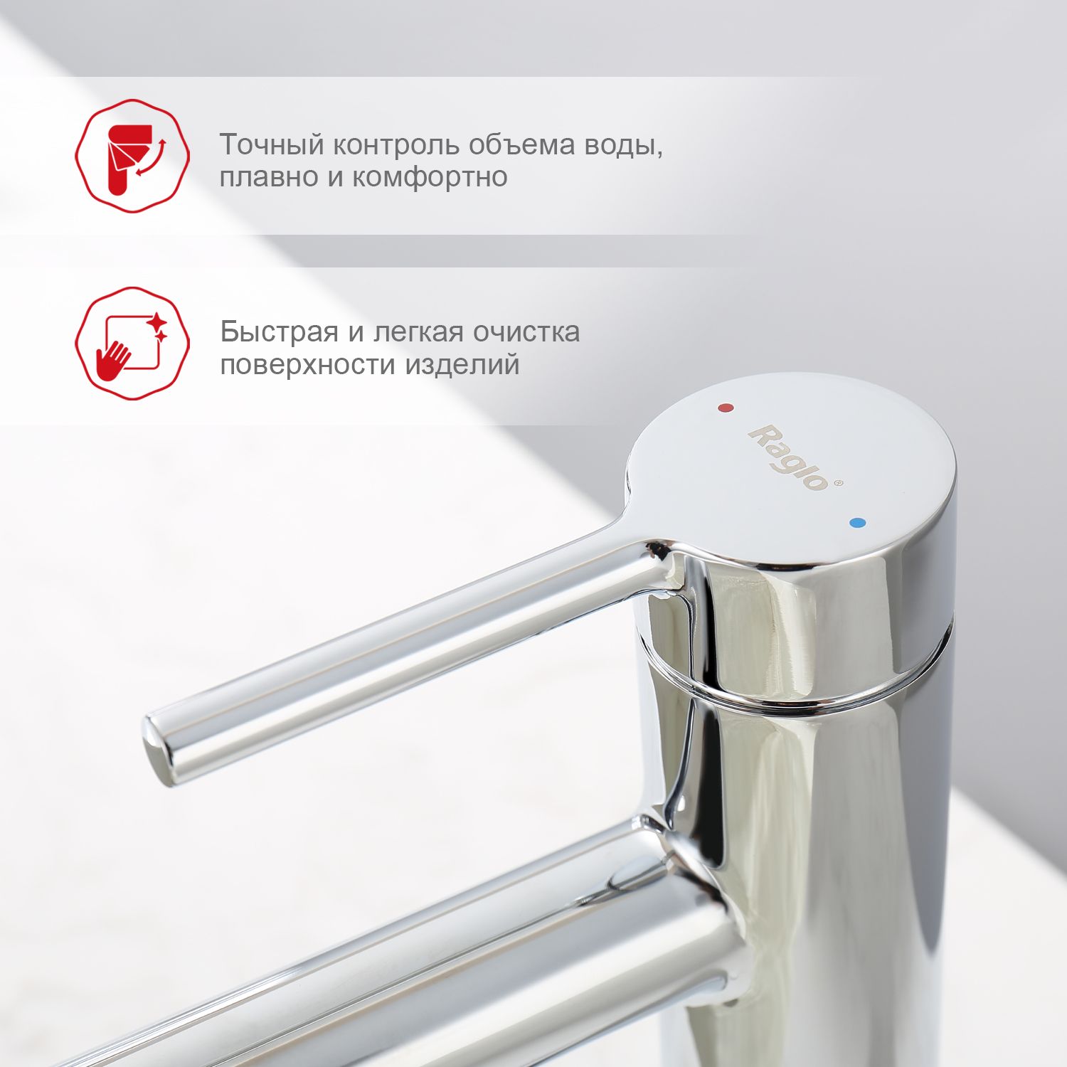 Смеситель для раковины Raglo R20.10, хром. Смеситель для раковины RAGLО имеет повышенную прочность корпуса. Соответствует требованиям международного стандарта. Одна рукоять для регулировки воды. Аэратор гарантирует одинаковый поток воды, сеточка рассеивает напор, вода смягчается. Смеситель устанавливается на гайке, нижняя часть смесителя вставляется в отверстие для монтажа и затягивается гайкой для фиксации. Данный смеситель для умывальника имеет надежный стационарный излив, не меняющий своего положении. Смеситель прекрасно смешивает потоки воды, а помимо этого обладает невысоким показателем шумов. Быстрый монтаж. Крепление на усиленной гайке. Подводка длиной 55 см имеет латунные гайки.Гарантия на смеситель 7 лет.