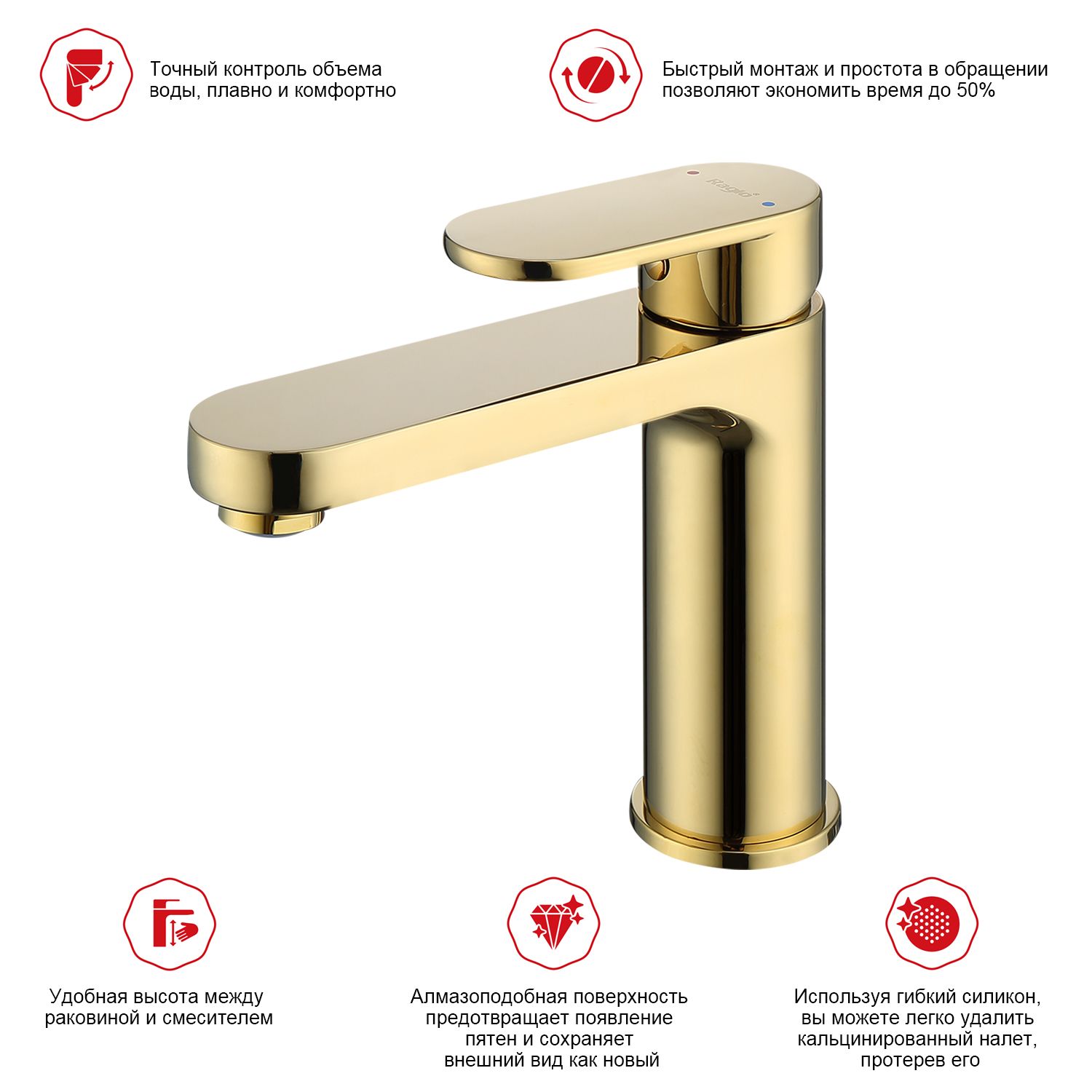Смеситель для раковины Raglo R50.10.23 золото купить