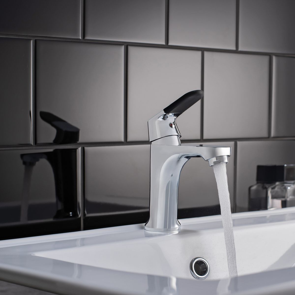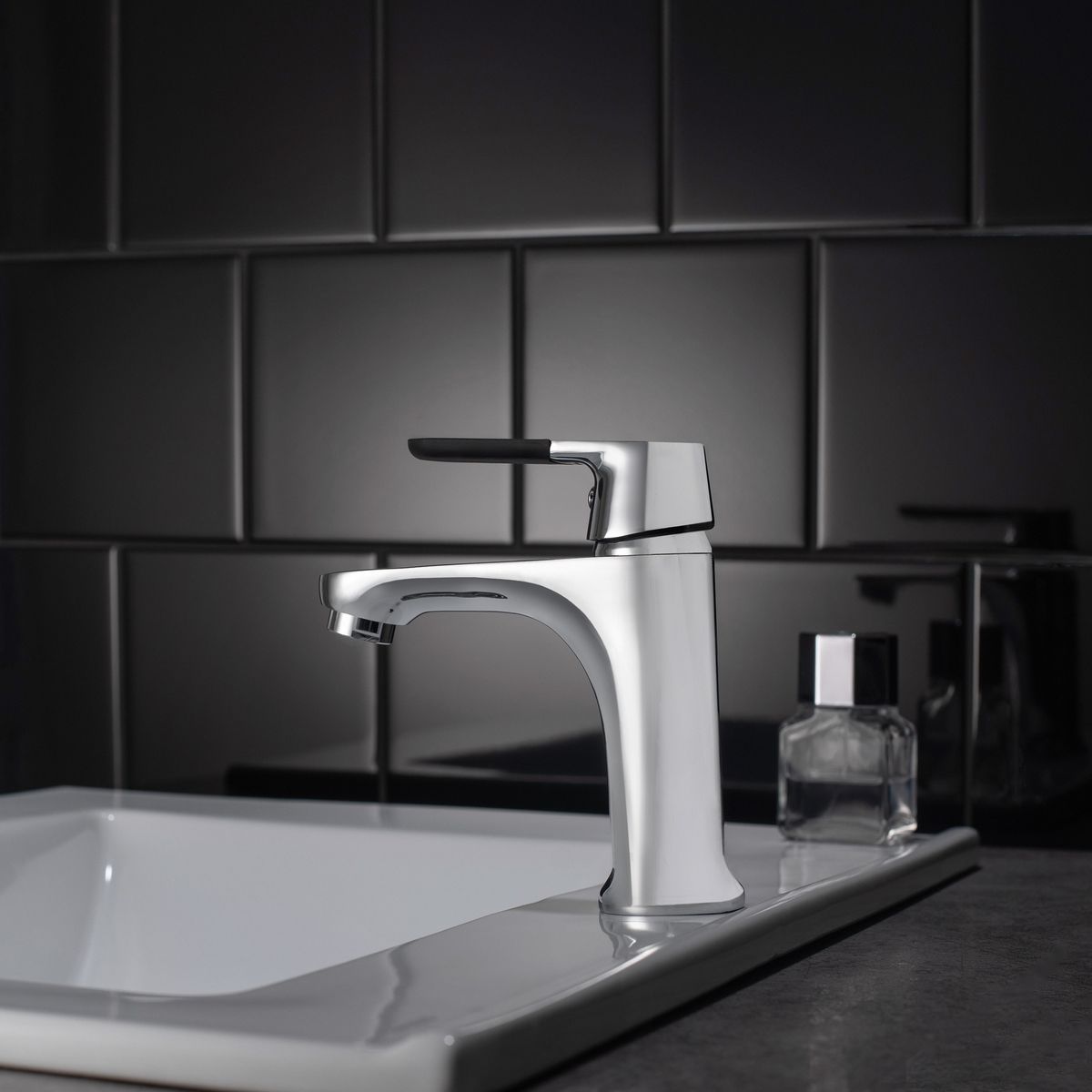 Одноручковый смеситель для умывальника с монолитным небольшим изливом - это стильное дизайнерское решение и эргономичность в использовании.