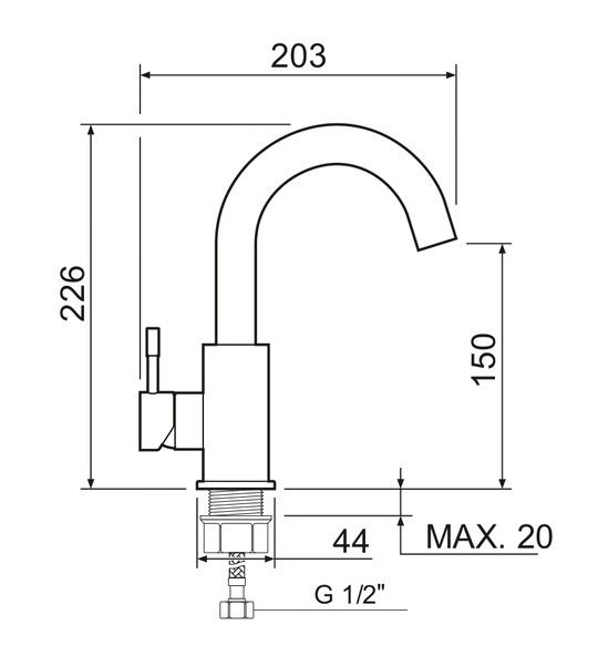 • Высота смесителя: