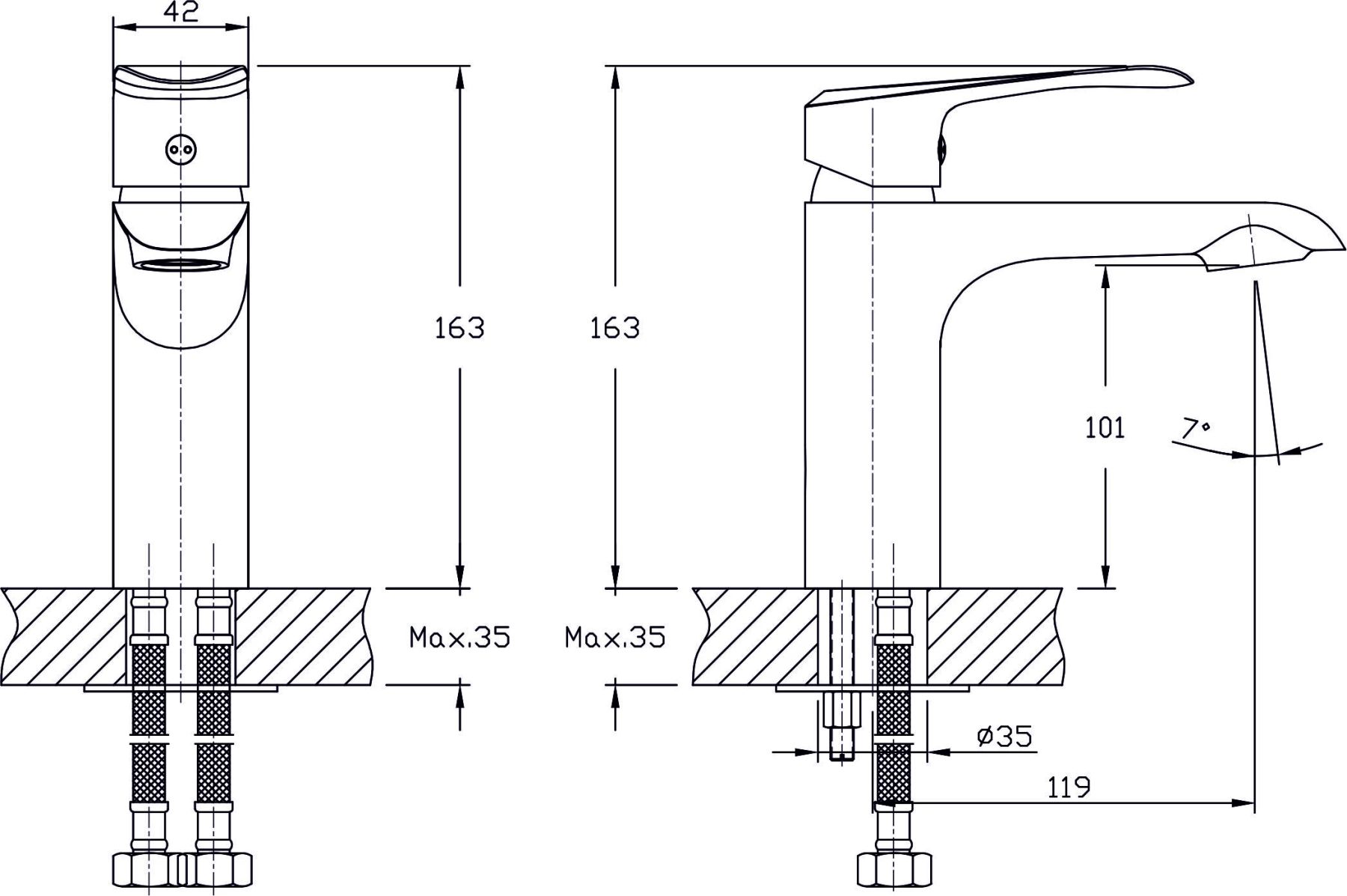 Смеситель для раковины RUSH арт. GZ3735-11 с металлической ручкой из коллекции Gozo изготовлен из высококачественной латуни и имеет рычажное управление.В смеситель установлен картридж D-35 с керамическими пластинами. Высота смесителя 163 мм. Излив литой неповоротный 119мм., высота излива до аэратора 101 мм. Аэратор изготовлен из пластика с нержавеющим корпусом, угол наклона аэратора- 7 гр. В комплекте гибкая подводка с латунными гайками 35 см - 2шт, универсальная присоединительная группа, фум-лента, индивидуальный пакет, паспорт, гарантийный талон.