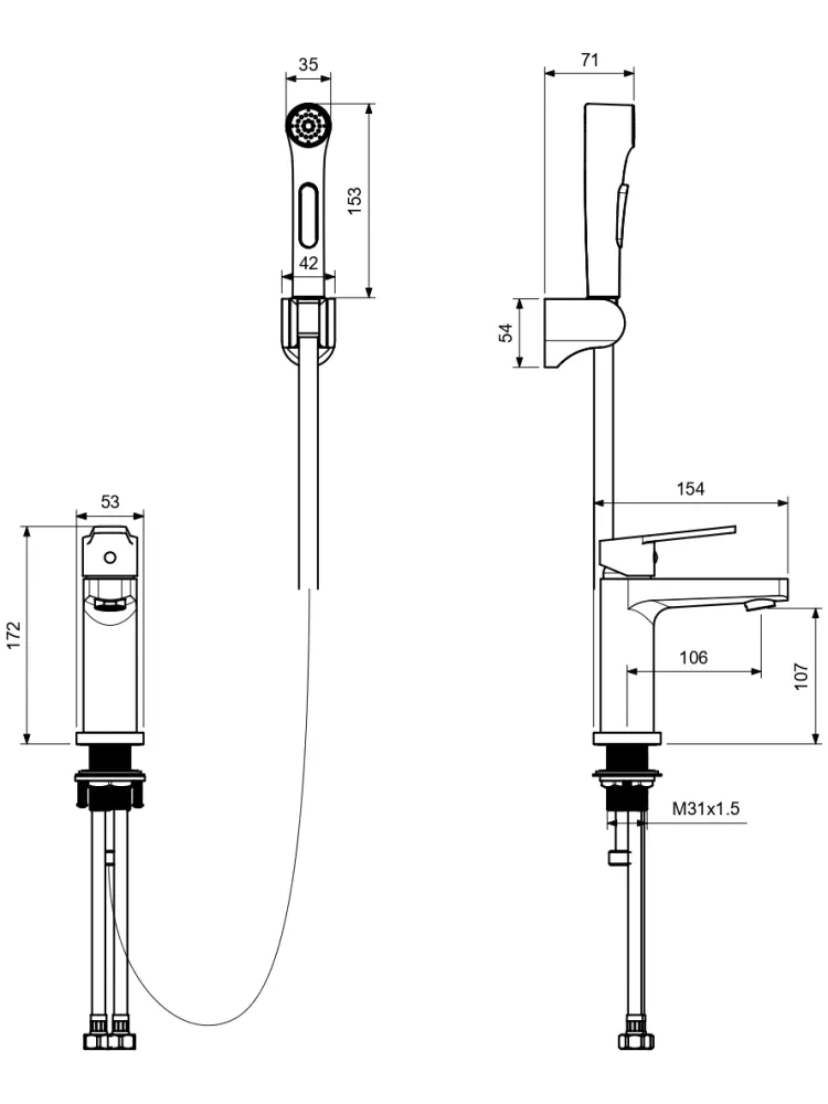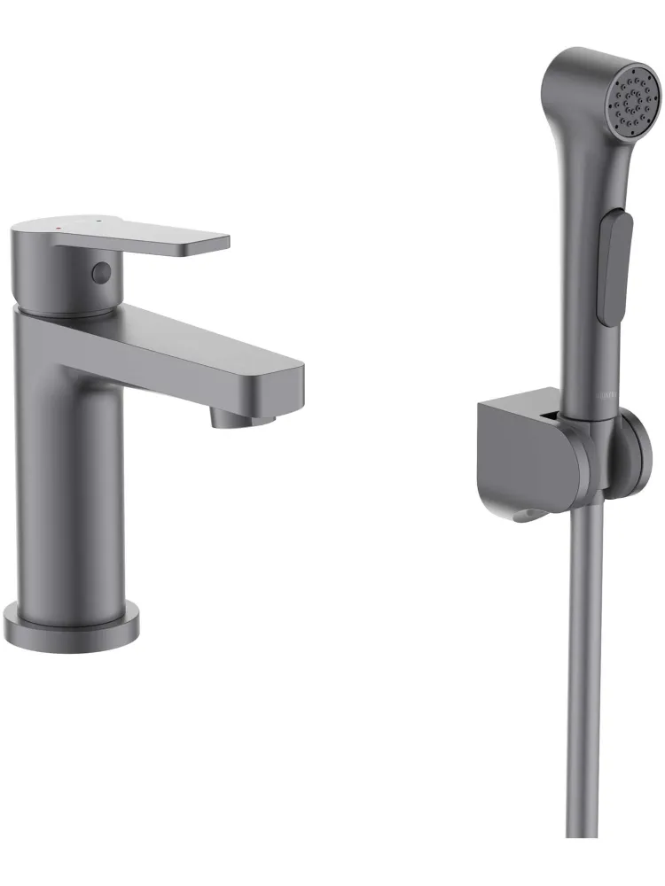 Смеситель для раковины с гигиеническим душем Aquatek Лугано AQ1712BGM оружейная стальСмеситель из латуни
