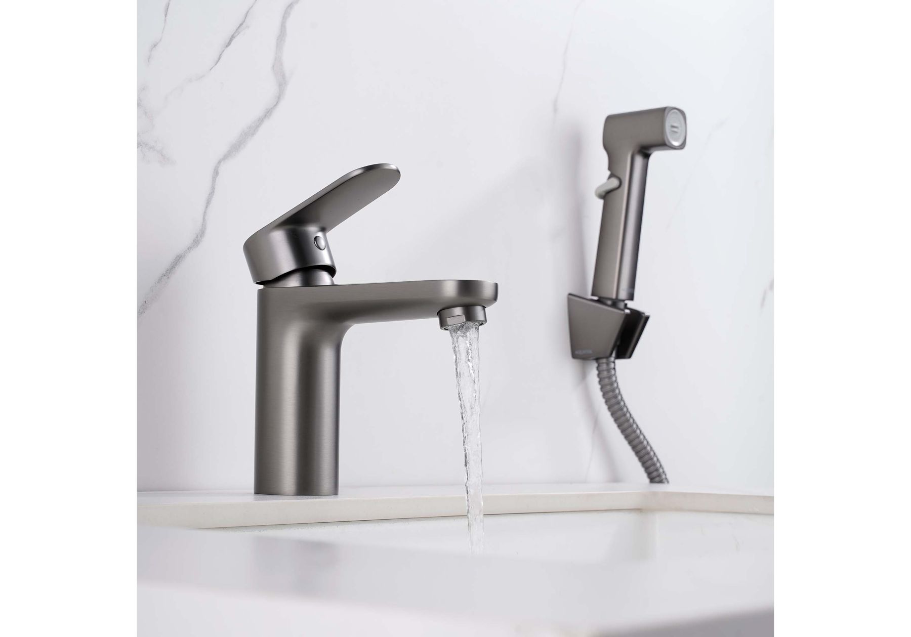 Смеситель для раковины с гигиеническим душем Aquatek Ника AQ1812BGM оружейная стальСмеситель