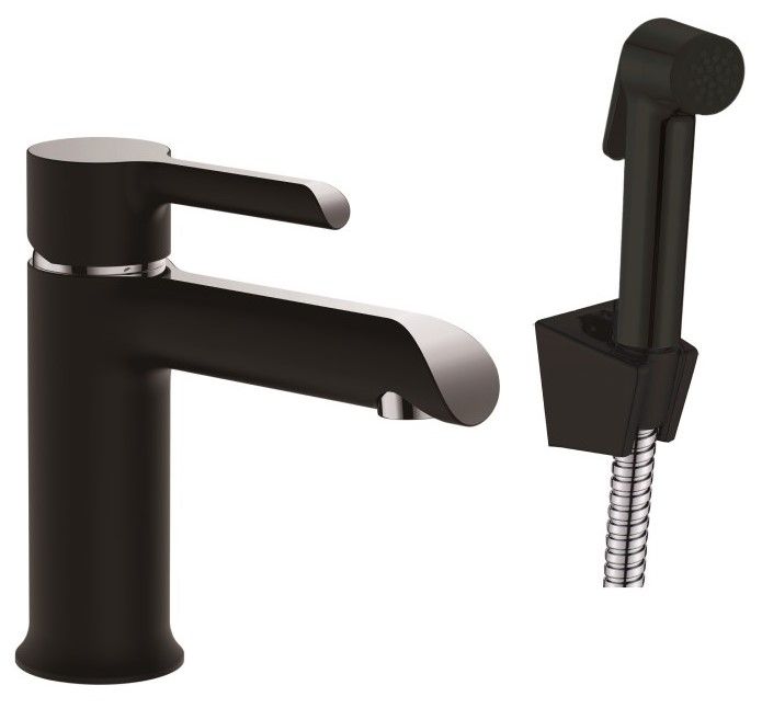 Смеситель для раковины с гигиеническим душем Haiba HB12805-7 чёрный матовый