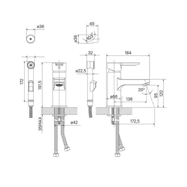 Назначение:для раковины с гигиеническим душем