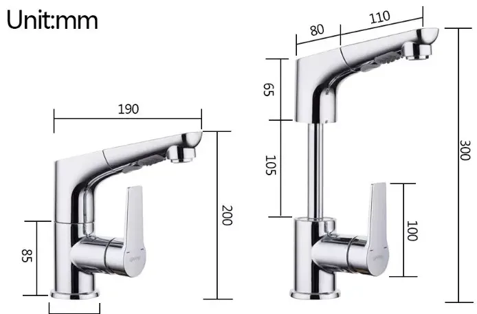 - излив: выдвижной, поворотный