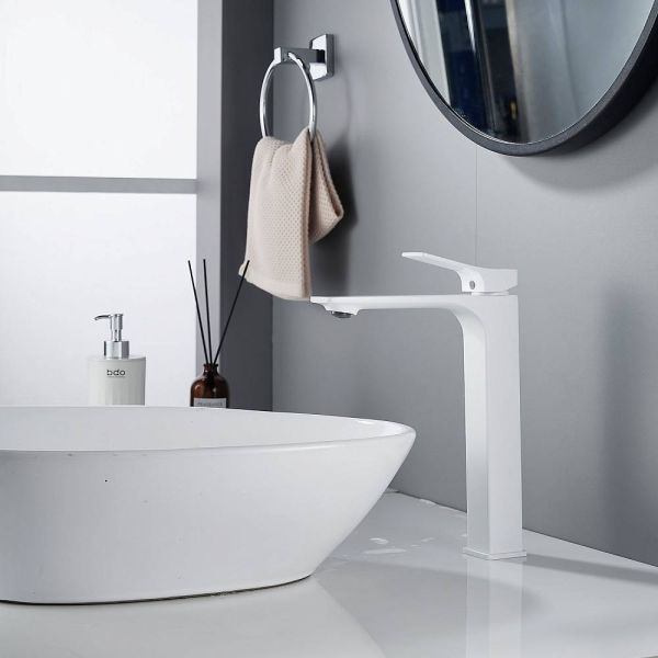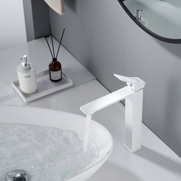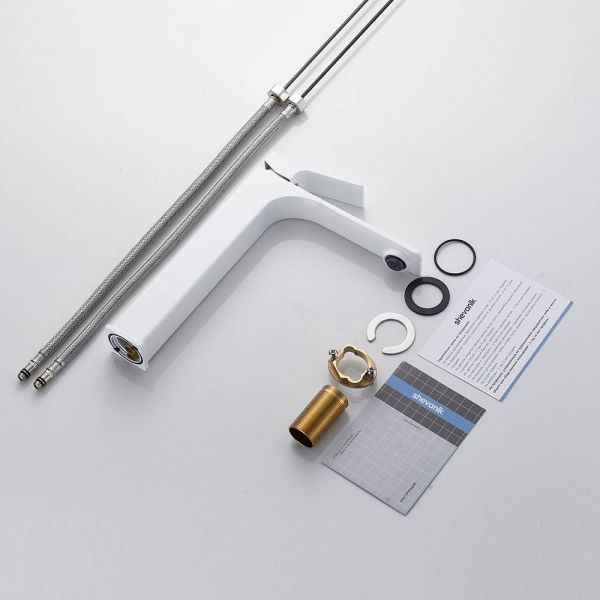 Высокий смеситель для раковины Shevanik S6111C в белом цвете — это стильное и функциональное решение для вашей ванной комнаты. Изготовленный из высококачественной латуни, он обеспечивает прочность и долговечность.