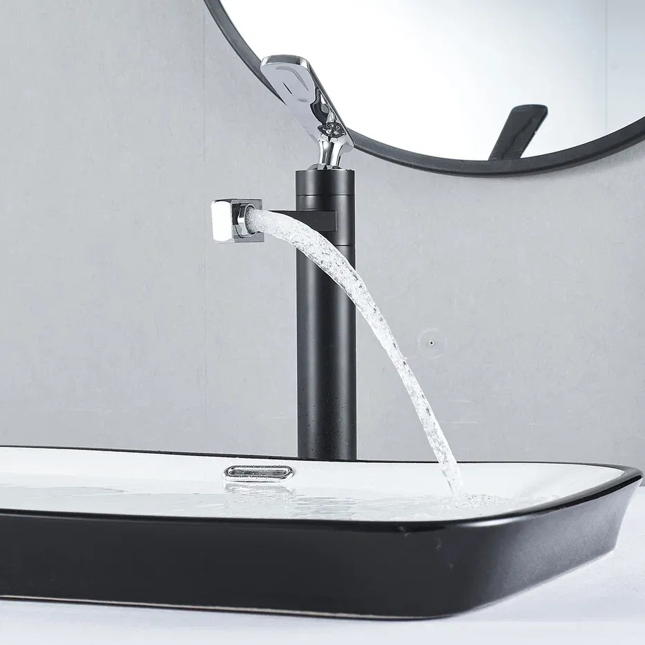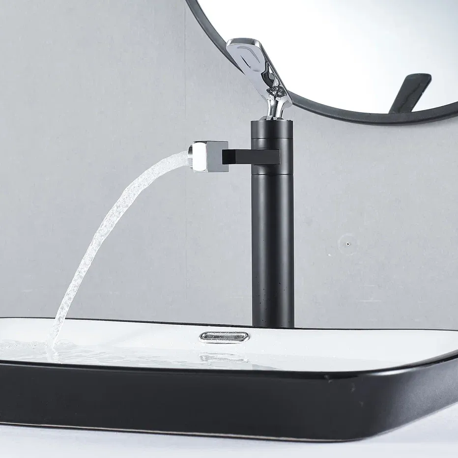 Смеситель для раковины с поворотным носиком Shevanik S6611H, черный/хром.Стилистика дизайна: Современный cтиль.Монтаж: на столешницу.Излив: традиционный, поворотный.Подводка: гибкая, 1/2" .Материал: латунь.