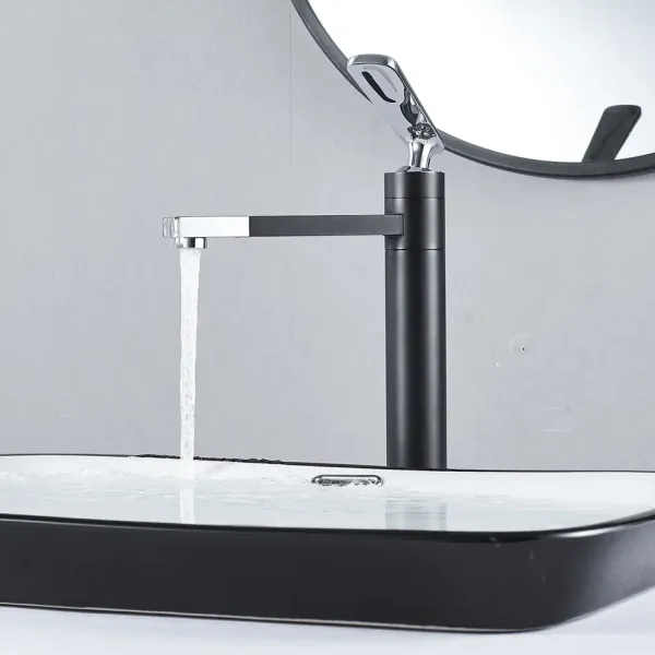 Смеситель для раковины Shevanik S6611H с поворотным носиком чёрный/хром купить