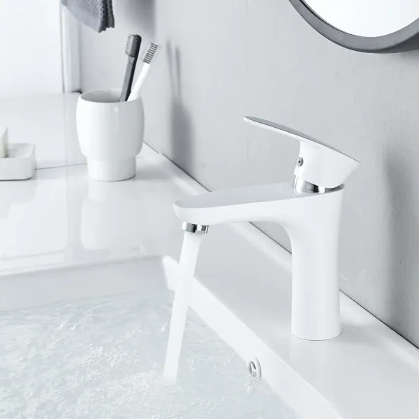 Смеситель для раковины Shevanik S9801F, белый/хром.Стилистика дизайна: Современный cтиль.Монтаж: на раковину.Излив: традиционный, фиксированный.Подводка: гибкая, 1/2" .Материал: латунь.
