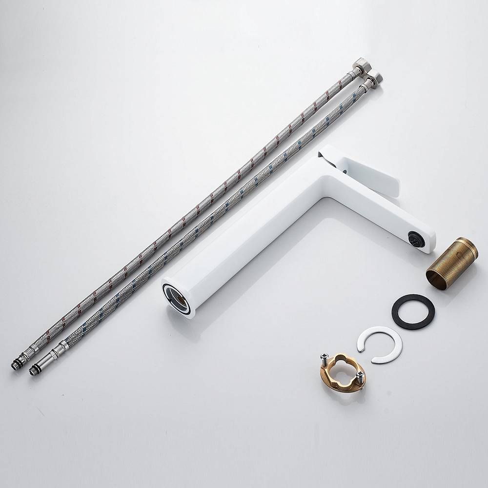 Смеситель для раковины Shevanik S9911C, белый.Стилистика дизайна: Современный cтиль.Монтаж: на столешницу.Излив: традиционный, фиксированный.Подводка: гибкая, 1/2" .Материал: латунь.