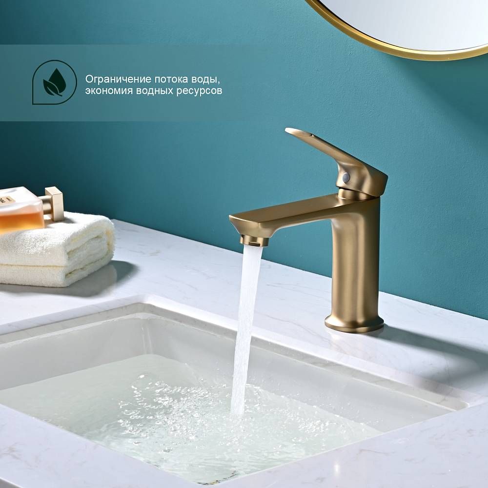 Смеситель для раковины Splenka S30.10.03 золотой сатин