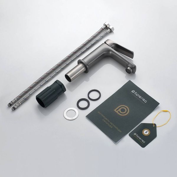 Смеситель для раковины Splenka S30.10.09, графит. Смеситель для раковины Splenka имеет повышенную прочность корпуса. Соответствует требованиям международного стандарта. Одна рукоять для регулировки воды. Аэратор гарантирует одинаковый поток воды, сеточка рассеивает напор, вода смягчается. Смеситель устанавливается на гайке, нижняя часть смесителя вставляется в отверстие для монтажа и затягивается гайкой для фиксации. Данный смеситель для умывальника имеет надежный стационарный излив, не меняющий своего положении. Смеситель прекрасно смешивает потоки воды, а помимо этого обладает невысоки показателем шумов. Быстрый монтаж. Гарантия производителя 5 лет.
