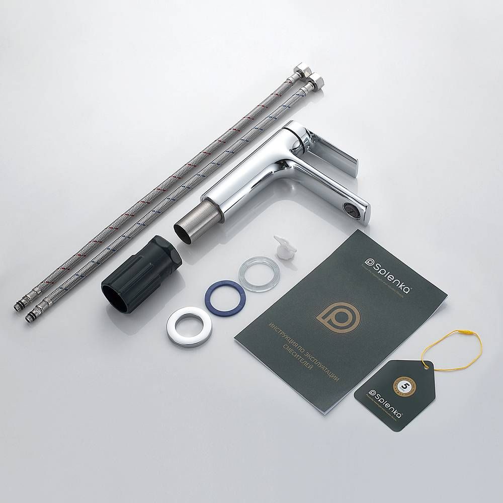 Смеситель для раковины Splenka S50.10, хром. Смеситель для раковины Splenka имеет повышенную прочность корпуса. Соответствует требованиям международного стандарта. Одна рукоять для регулировки воды. Аэратор гарантирует одинаковый поток воды, сеточка рассеивает напор, вода смягчается. Смеситель устанавливается на гайке, нижняя часть смесителя вставляется в отверстие для монтажа и затягивается гайкой для фиксации. Данный смеситель для умывальника имеет надежный стационарный излив, не меняющий своего положении. Смеситель прекрасно смешивает потоки воды, а помимо этого обладает невысоки показателем шумов. Быстрый монтаж. Гарантия производителя 5 лет.