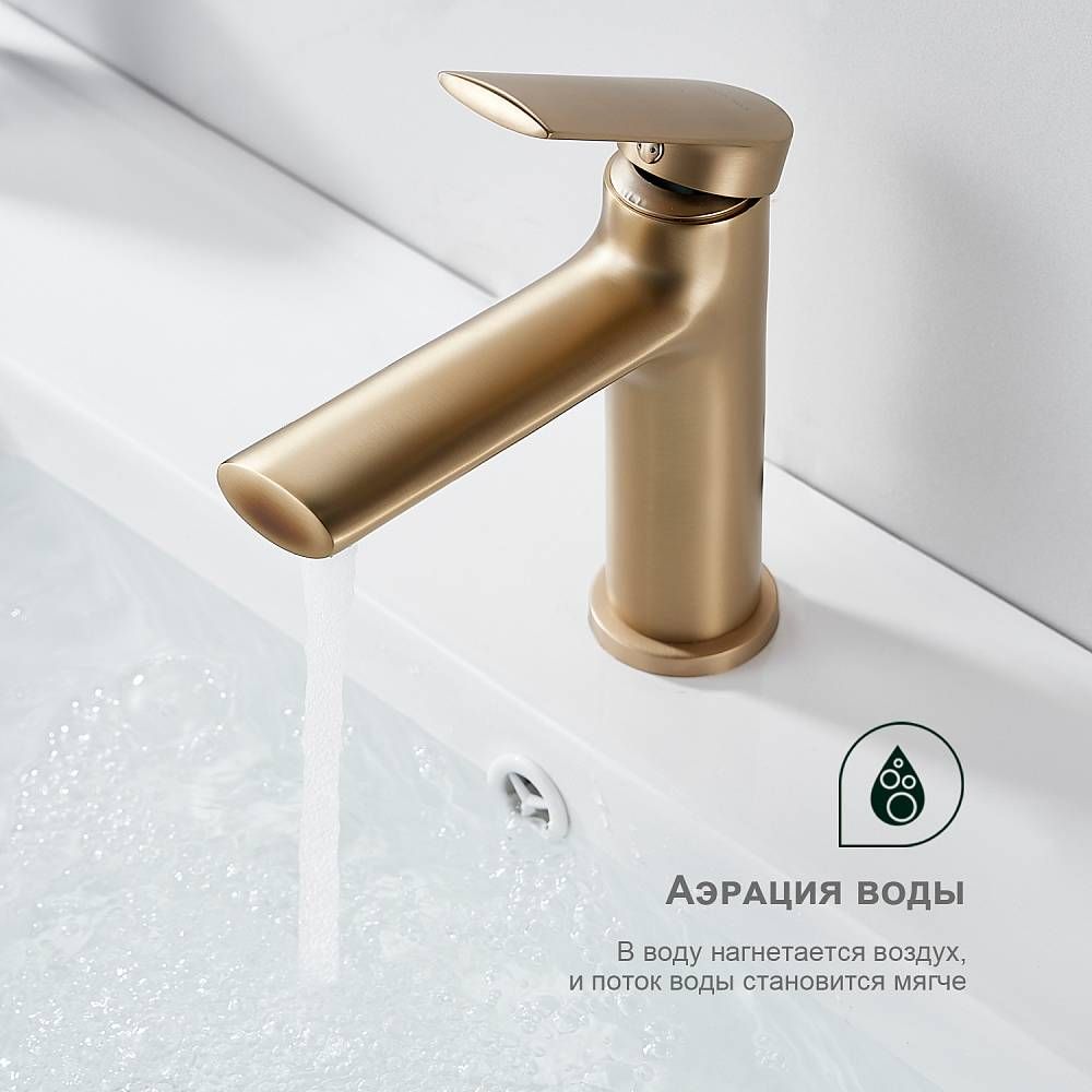 Смеситель для раковины Splenka S50.10.03 золотой сатин