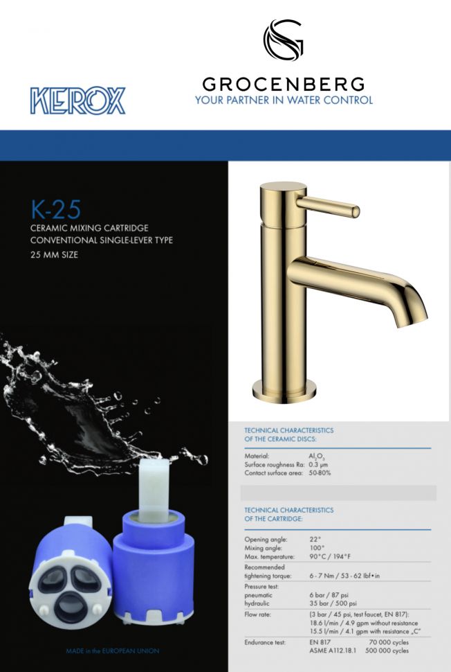 Смеситель для раковины стандартный Grocenberg GB2099GO Золото купить