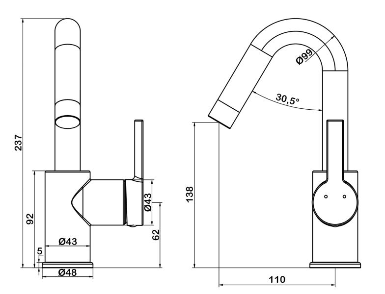 • Высота смесителя: