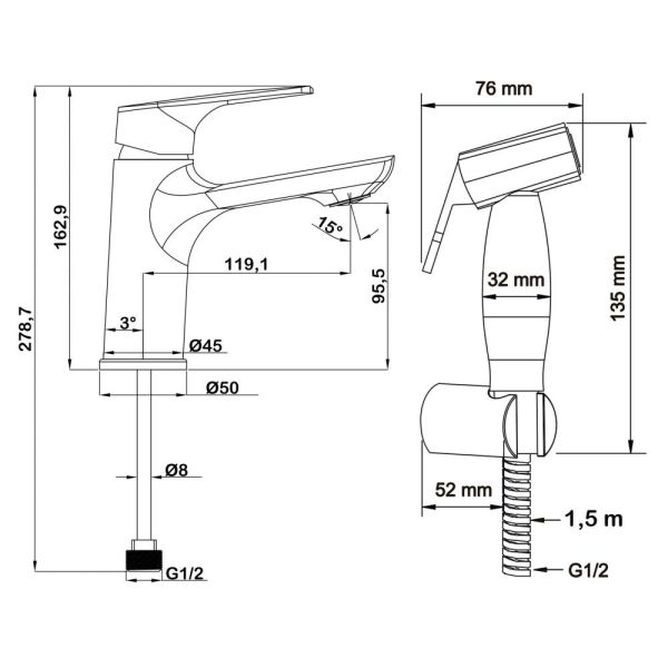Смеситель для раковины с гигиенической лейкой Керамический картридж Sedal.Аэратор Neoperl.Гибкая подводка SoftPEX. Гигиенически стабильная латунь с высоким содержанием меди. Лейка прошла тест от протечек - 5 Bar на 24 часа.2 режима, сопло из монополимера стойкого к обрастанию водным камнем, запорное седло из высококачественной латуни, кронштейн, шланг металл 1,5м.