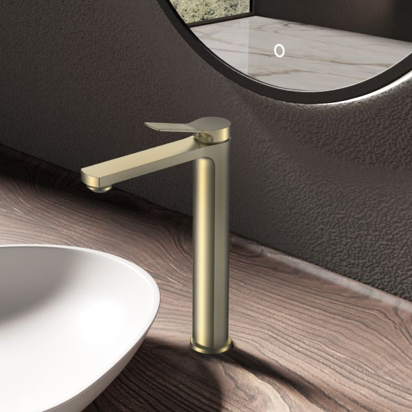 Смеситель для накладной раковины Vincea Arco VBF-4AR02BG однорычажный, брашированное золото