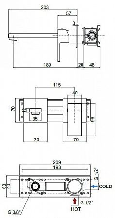 Смеситель для раковины встраиваемый однорычажный, золото Cezares UNIKA-BLI2-03/24 купить