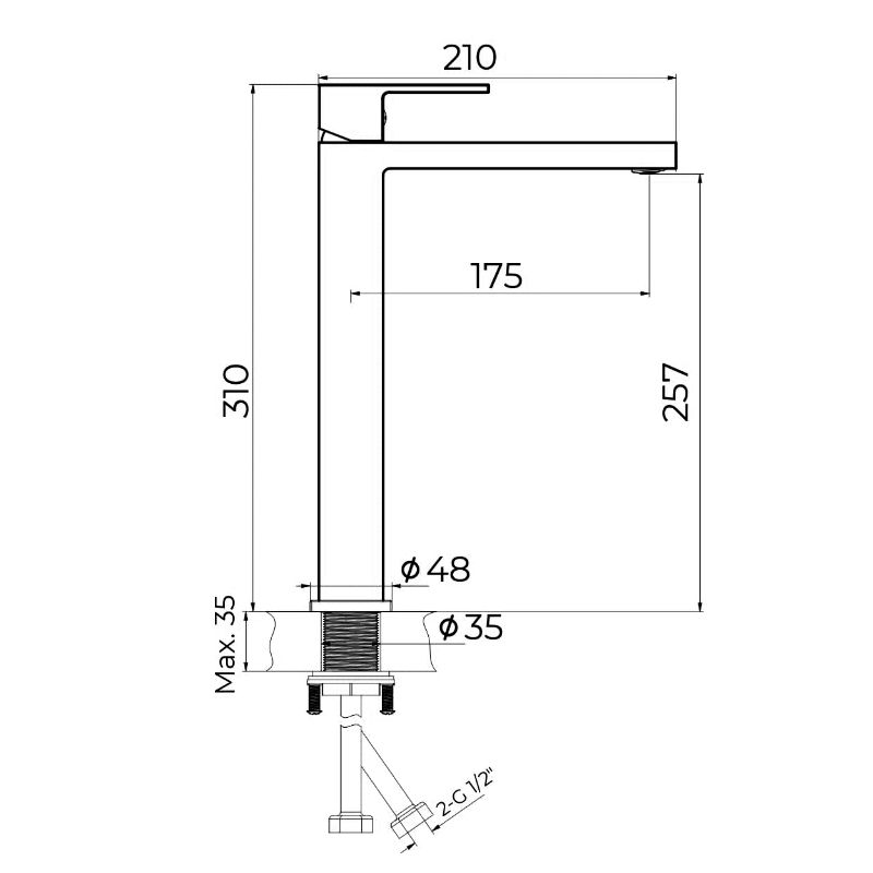 Смеситель для раковины высокий Knotlor KN-24/GMP, оружейная сталь