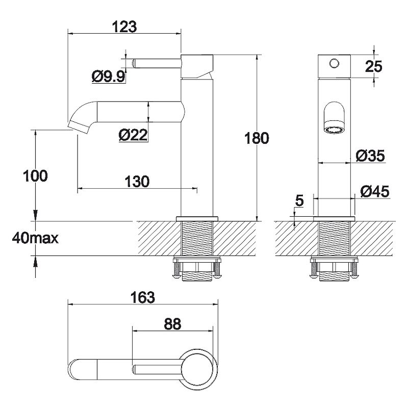 - высота до излива 100 мм;