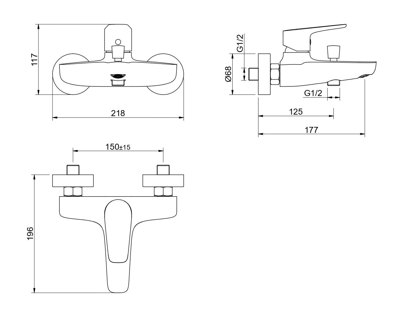 • Однорычажная система регулировки силы струи и температуры воды