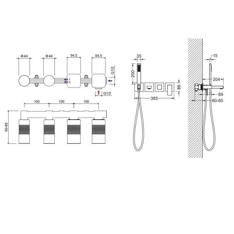 Душевой гарнитур: гигиеническая лейка, шланг 1,5м