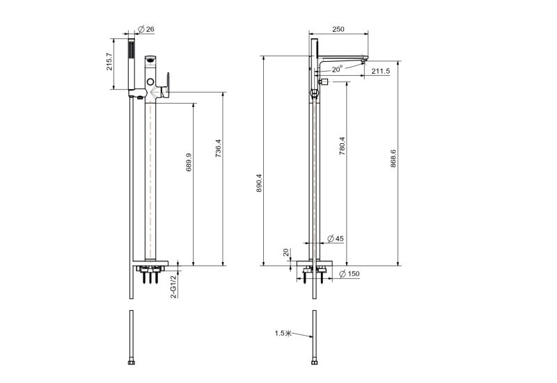 Размер/диаметр ручной лейки (см): 21,57 x 2,6