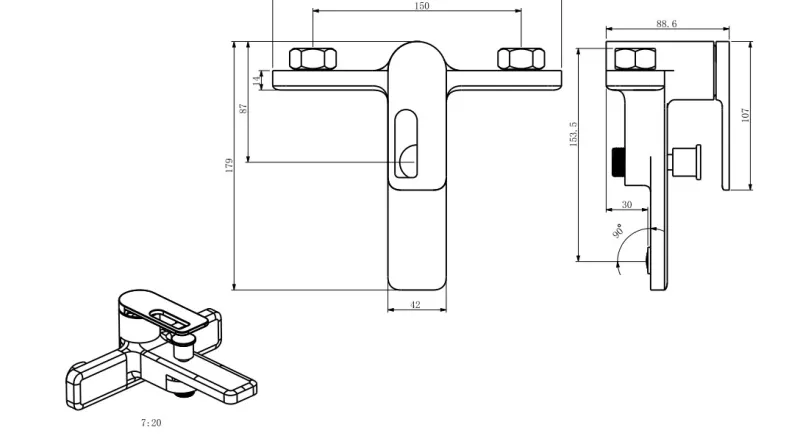 Смеситель для ванны Black&White 9101GM от производителя сантехники Black&White. Однорычажный механизм прост в управлении, регулируя напор и температуру воды одной рукой. Серый цвет смесителя добавляет утонченности и идеально сочетается с минималистичными дизайнами.¶ Латунный материал устойчив к коррозии и долговечен, что делает его надежным выбором. Матовое покрытие меньше показывает отпечатки пальцев и водяные разводы, упрощая уход за смесителем. Смеситель для ванны Black&White 9101GM имеет гарантию 2 года.