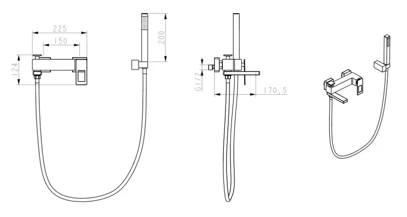 - Смеситель для ванны с душевым гарнитуром