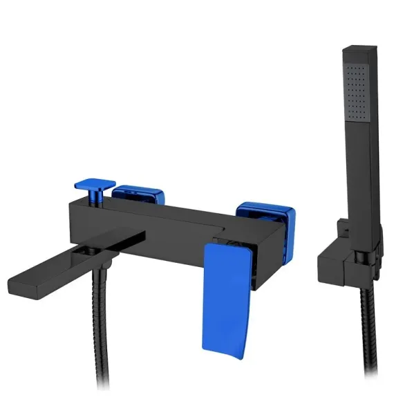 Смеситель для ванны и душа Boheme Q, с душевым гарнитуром, цвет черный/синий, 143-BUW.2